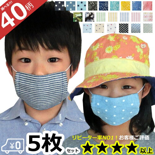 マスク 送料無料 子供用 高学年対応!給食 ガーゼ 40柄から選べるマスク5枚セット 子ども 乗り物 車 星柄 ハート柄 PM2.5 花粉 給食当番 小学校 保育園 幼稚園【日本製 おしゃれ 女の子 男の子 キッズマスク】抗菌ゴム!