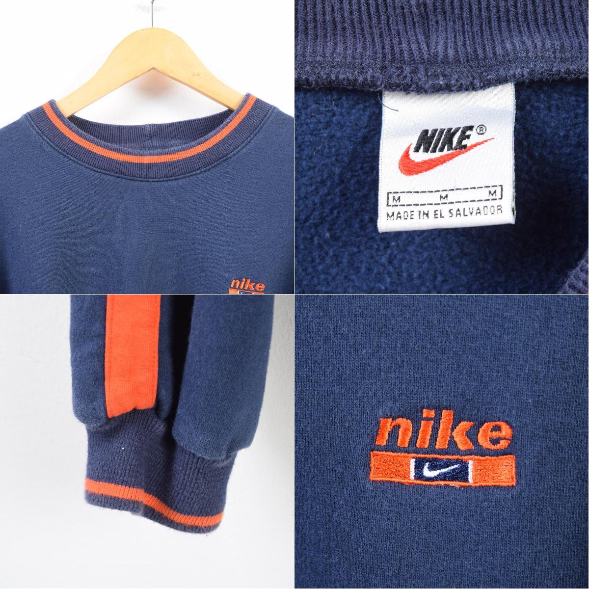 商品詳細ブランド・NIKE・ナイキ・特徴・ライン入り・ストリート スポーツ・モデル/形状・ワンポイントロゴスウェット トレーナー・素材・コットン:80%・ポリエステル:20%・色・ネイビー系 紺色・柄・ワンポイント・生産国・エルサルバドル製・年代・90年代・サイズ・メンズM・表記サイズ:M・着丈:60cm・身幅:61cm・肩幅:57cm・袖丈:52cm・コンディション・B・カテゴリ・メンズ・スウェット・トレーナー・トップス・商品番号・wbe9467・取扱店・ネットショップ・スタッフコメントNIKE ワンポイントロゴスウェット トレーナー / メンズM 価格 5,400円(税込) / 商品番号 wbe9467※USEDですので使用感などございますが、まだまだご愛用していただけます。