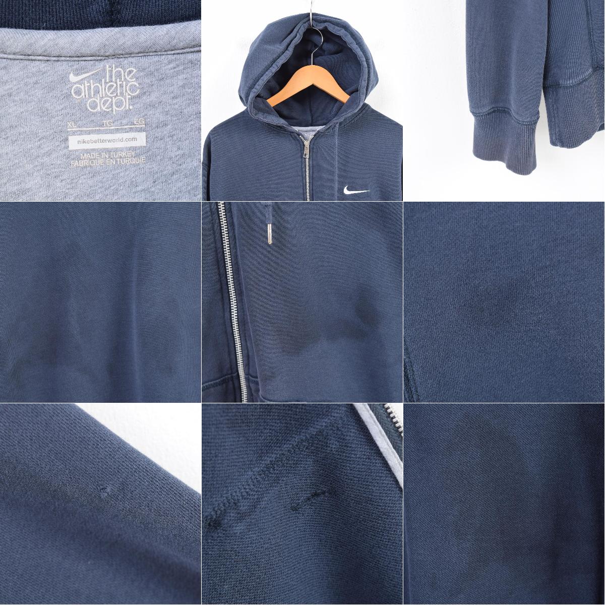 商品詳細ブランド・NIKE・ナイキ・特徴・フルジップ・モデル/形状・スウェットフルジップパーカー・素材・コットン:100%・色・ネイビー系 紺色・柄・ワンポイント・生産国・トルコ製・年代サイズ・メンズXL・表記サイズ:XL・着丈:67cm・身幅:62cm・肩幅:48cm・袖丈:63cm・コンディション・D・カテゴリ・メンズ・スウェット・パーカー・トップス・商品番号・wau0274・取扱店・ネットショップ・スタッフコメントNIKE スウェットフルジップパーカー / メンズXL通常価格1,890円のところ販売価格3,780円(税込) / 商品番号 wau0274※USEDですので使用感、全体的に汚れ、袖、内側にダメージなどございますが、まだまだご愛用していただけます。