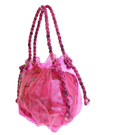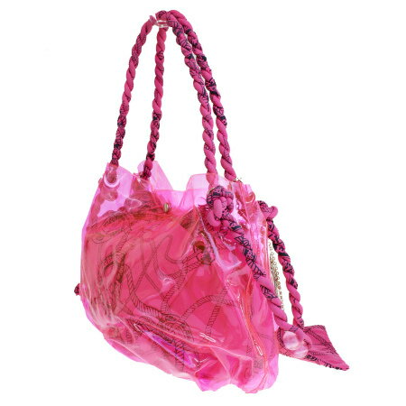 送料無料 【中古】 中美品 フォリフォリ Folli Follie ショルダーバッグ トート ピンク ビニール ナイロン 保存袋付き 03HE186