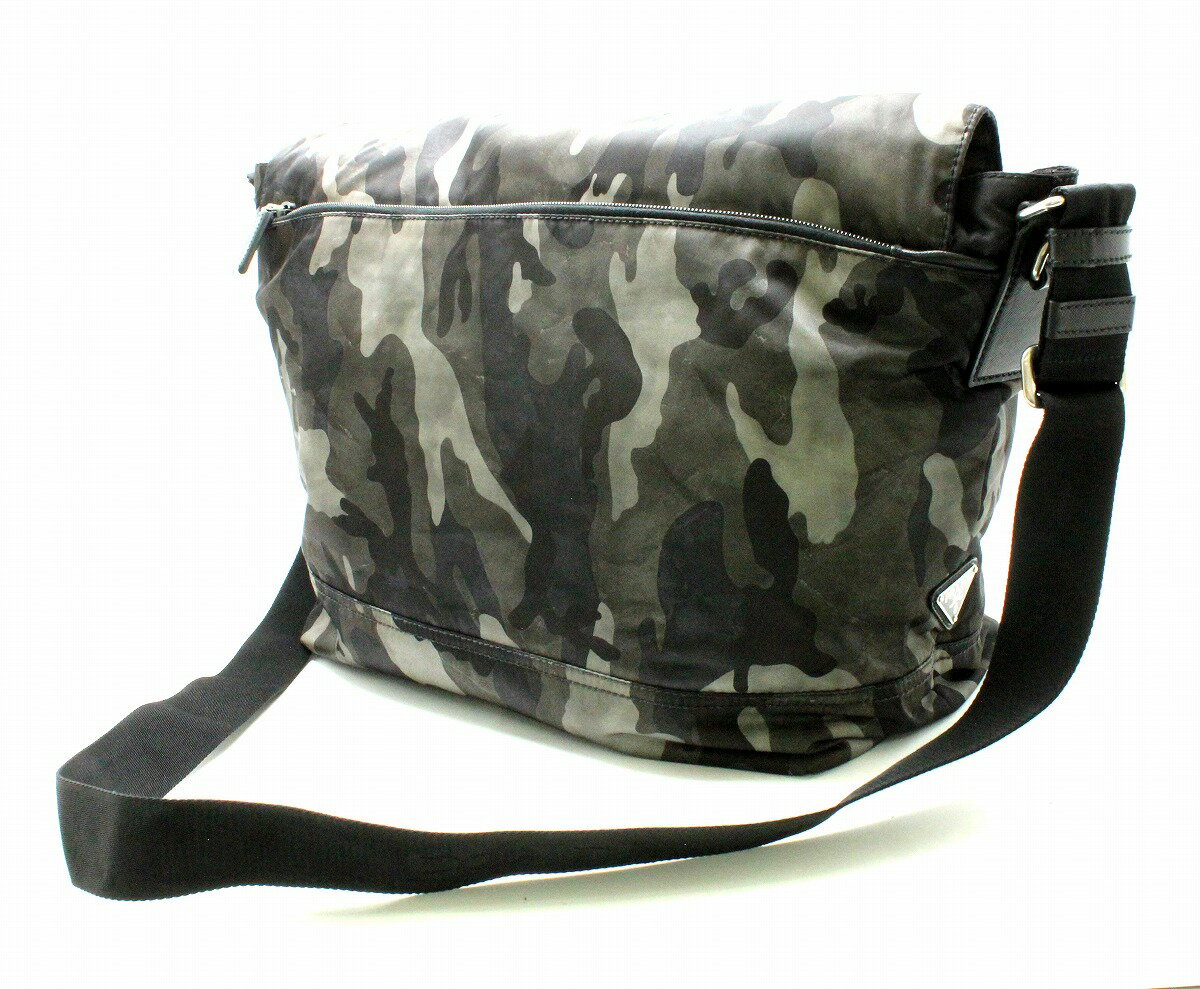 【バッグ】PRADA プラダ メッセンジャーバッグ ショルダーバッグ 斜め掛け 迷彩柄 カモフラージュ ナイロン レザー FUMO グリーン系 VA0869 【中古】【k】
